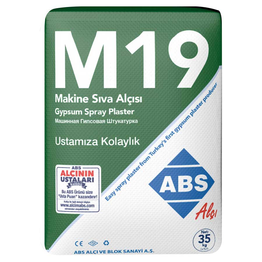 M19 Makine Sıva Alçısı, makine ile püskürtülerek uygulanan alçı esaslı torbalanmış hazır sıvadır.